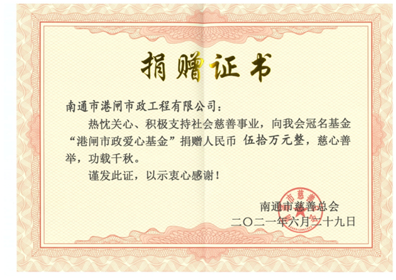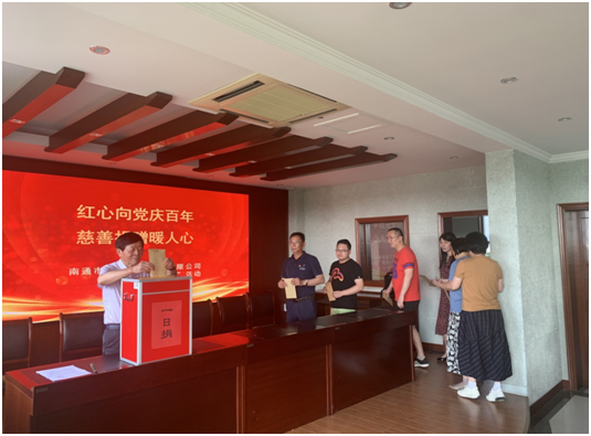 中國(guó)共產(chǎn)黨100年的光輝歷程,100年的風(fēng)風(fēng)雨雨,百載探索發(fā)展,中華大地滄桑巨變,艱辛成就偉業(yè),奮斗創(chuàng)造輝煌,如今我們的幸福生活離不開(kāi)先輩們,是他們付出生命,奉獻(xiàn)了青春,才有了繁榮富強(qiáng)的屹立世界之林的中國(guó)。值此建黨100周年之際,公司組織開(kāi)展“不忘初心、牢記使命”系列活動(dòng)向建黨百年獻(xiàn)禮:6月26日,公司參加由南通市市政和園林局主辦的“頌歌獻(xiàn)給黨”歌詠比賽。6月29日,公司向南通市慈善總會(huì)港閘市政基金會(huì)和崇川區(qū)慈善會(huì)港閘市政基金會(huì)分別再注資50萬(wàn)元和20萬(wàn)元;6月30日,黨支部組織“紅心向黨慶百年,慈善捐贈(zèng)暖人心”一日捐活動(dòng),捐贈(zèng)活動(dòng)在“沒(méi)有共產(chǎn)黨就沒(méi)有新中國(guó)”的歌聲中結(jié)束。