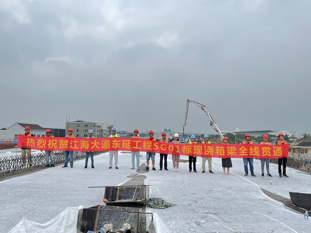 8月24日,我公司承建的江海大道東延工程一標(biāo)段在全線七個標(biāo)段中率先完成箱梁合攏貫通。